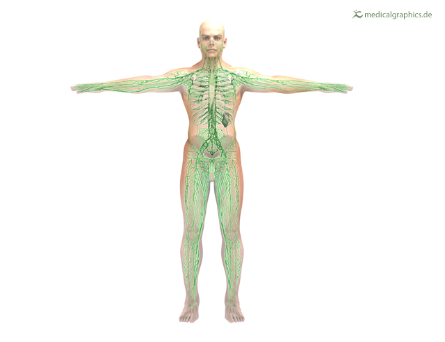 Stichwörter Lymphsystem, Skelett, Becken, Wirbelsaeule, Schulterblatt, Schaedel, Arm, Bein, Oberschenkel, Unterschenkel, Unterarm, Systema lymphaticum, Cranium, Scapula, Sternum, Lymphatisches System
