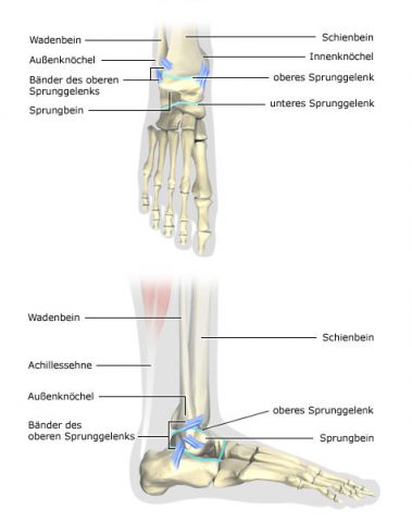 Gestaltung einer anatomischen Illustration zu den Bändern und der Lage des Sprunggelenks.