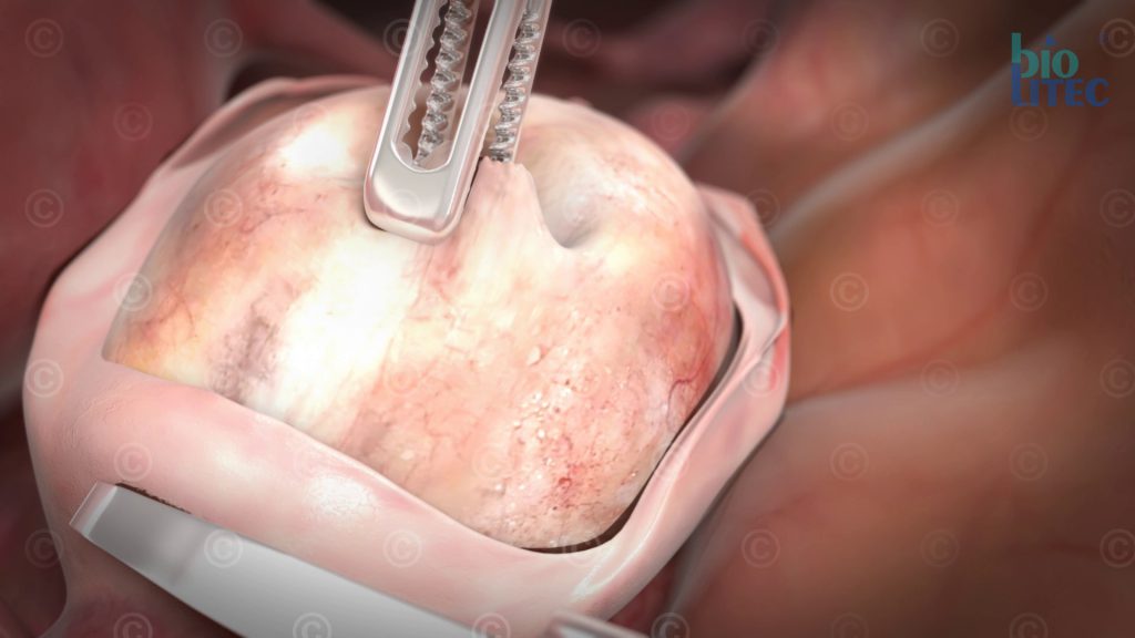 Gestaltung einer Illustration für eine Dissertation über die Versorgung einer kolo-rektalen Anastomose mittels Endo-Schwamm.